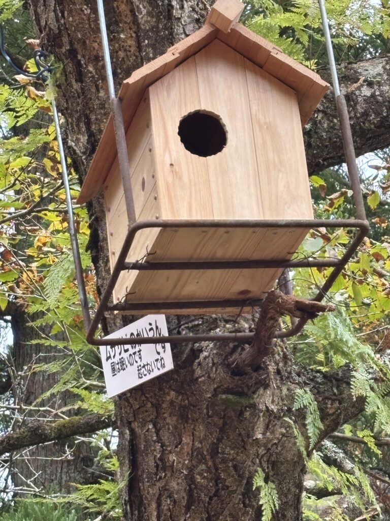 開運橋のかいうん君(ムササビ)の新居がこの度完成し、無事設置となりました。前の居宅はスズメバチに巣を作られてしまい、惜しまれながら解体いたしました。かいうん君にはお知らせしておりませんので、早く気づいてくれることを切に願います。